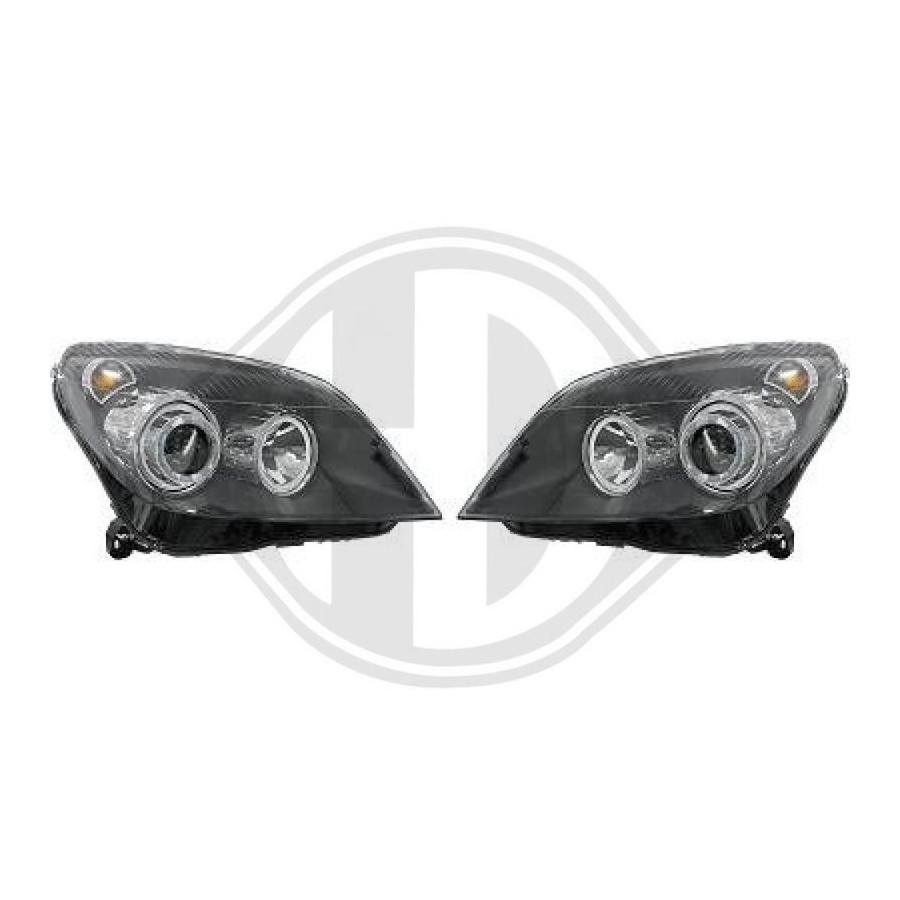 Koplampen set pasklaar Opel Astra H 10/2003-. De set bestaat uit een linker en een rechter koplamp en wordt geleverd met stelmotor voor hoogteregeling. E-keur: ja