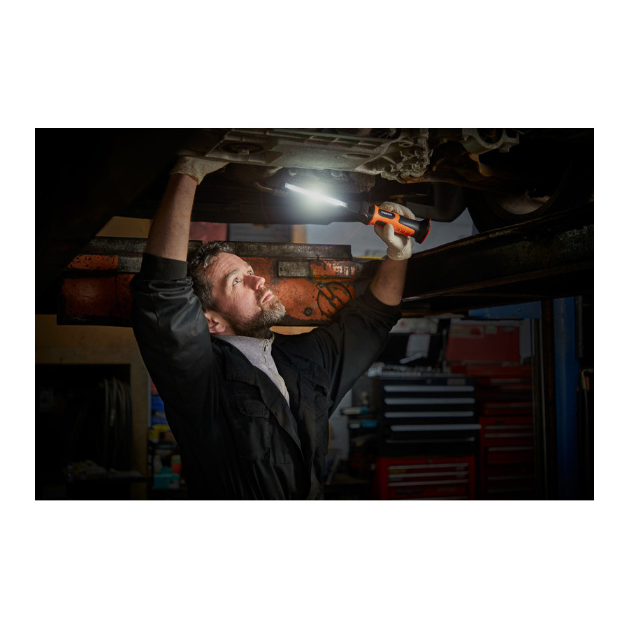 Deze inspectielamp heeft een geïntegreerde haak en magneten voor handsfree werken, waardoor hij ideaal is als lamp voor manuele werkzaamheden, autoreparaties en voor alledaags gebruik. Overeenkomstig de IP-beschermingsklasse IP65 is deze inspectielamp beschermd tegen het binnendringen van stof en water en getest op schokbestendigheid volgens IK06.